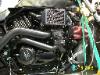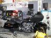 | Dynamometer Service It’s all about the air/fuel ratio. The right mixture of fuel to air is what gives us proper combustion. When all the fuel is combined with all the free oxygen in the combustion chamber there is a chemical balance. This air/fuel ratio is called the stoichiometric mixture. For gasoline this is 14.7 to 1. That is 14.7 times the mass of air to fuel. An excessively lean mixture will cause an engine to run too hot. This will cause damage to the motor and other components. An overly rich mixture is of course a waste of fuel. It becomes evident that air/fuel ratio measuring is important for tuning an engine. More and more we’re seeing fuel injected bikes with closed loop systems that can monitor and maintain desired air/fuel ratio. That’s where those oxygen sensors you see in the head pipes come into play. Carbureted and open loop fuel injected engines cannot make changes to themselves to correct for improper air/fuel mixtures. How does this air/fuel ratio change? Anything that can affect how your engine breathes will alter the ratio. Is Dyno-Tuning for you? Motorcycles from the showroom floor should be good to go. The factory bike is at specs. Most engine performance upgrades will change the air/fuel ratio requirements for your bike. Aftermarket intake, exhaust systems, and cam changes are the big concerns for re-tuning. This is where the Dynamometer comes in. While on the Dyno, your bike’s air/fuel ratio is monitored at all throttle positions and RPM ranges possible. The same combinations you would feel on the road. As mentioned before, carburetors and open loop fuel injection systems cannot correct themselves. Carbureted engines however, can be re-jetted to achieve desired results. With our load controlled Dyno we can incrementally and methodically program fuel injected tuners to also achieve the desired air/fuel mixture. A properly tuned bike will not waste fuel or ruin your engine. Currently, emission related components of vehicles under the California Air Resources Board jurisdiction can not be tampered with. The Dyno. D&D Cycle uses a CycleDyn eddy current load dynamometer built by SuperFlow Technologies Group. SuperFlow CycleDyn is also the official chassis dyno for S&S Cycle. Our machine was built in 1996. It has recently been upgraded and calibrated by SuperFlow and currently uses the latest version of WinDyn software. We are certified CycleDyn operators. |